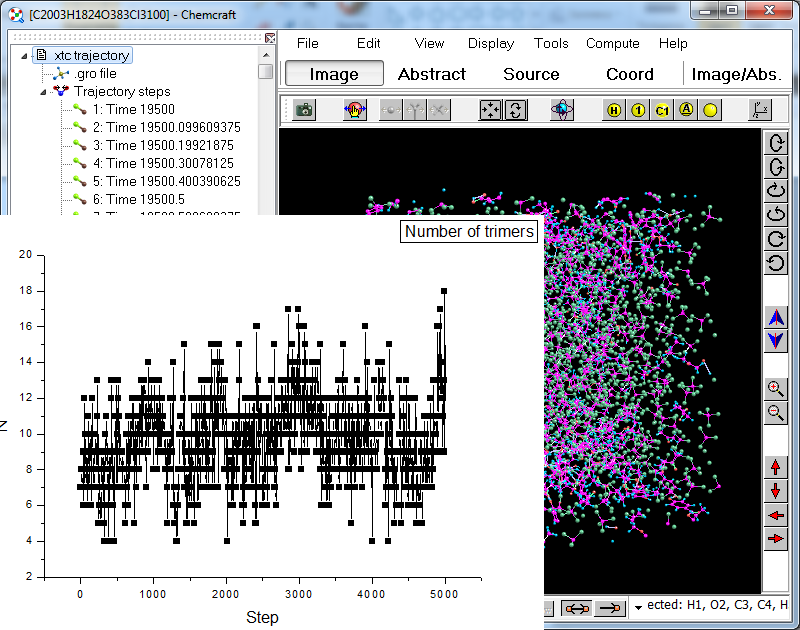 4. The tools above can be used not only for individual trajectory step, but also for all trajectory steps - you can draw a graph of the number of trimers vs trajectory step: