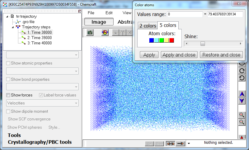 7. Both for velocities or forces read from Gromacs .trr files or computed by Chemcraft, they can be visualized in the form of atomic colors:
