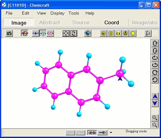 a radical fragment is dragged, it can be rotated or moved in Z direction via